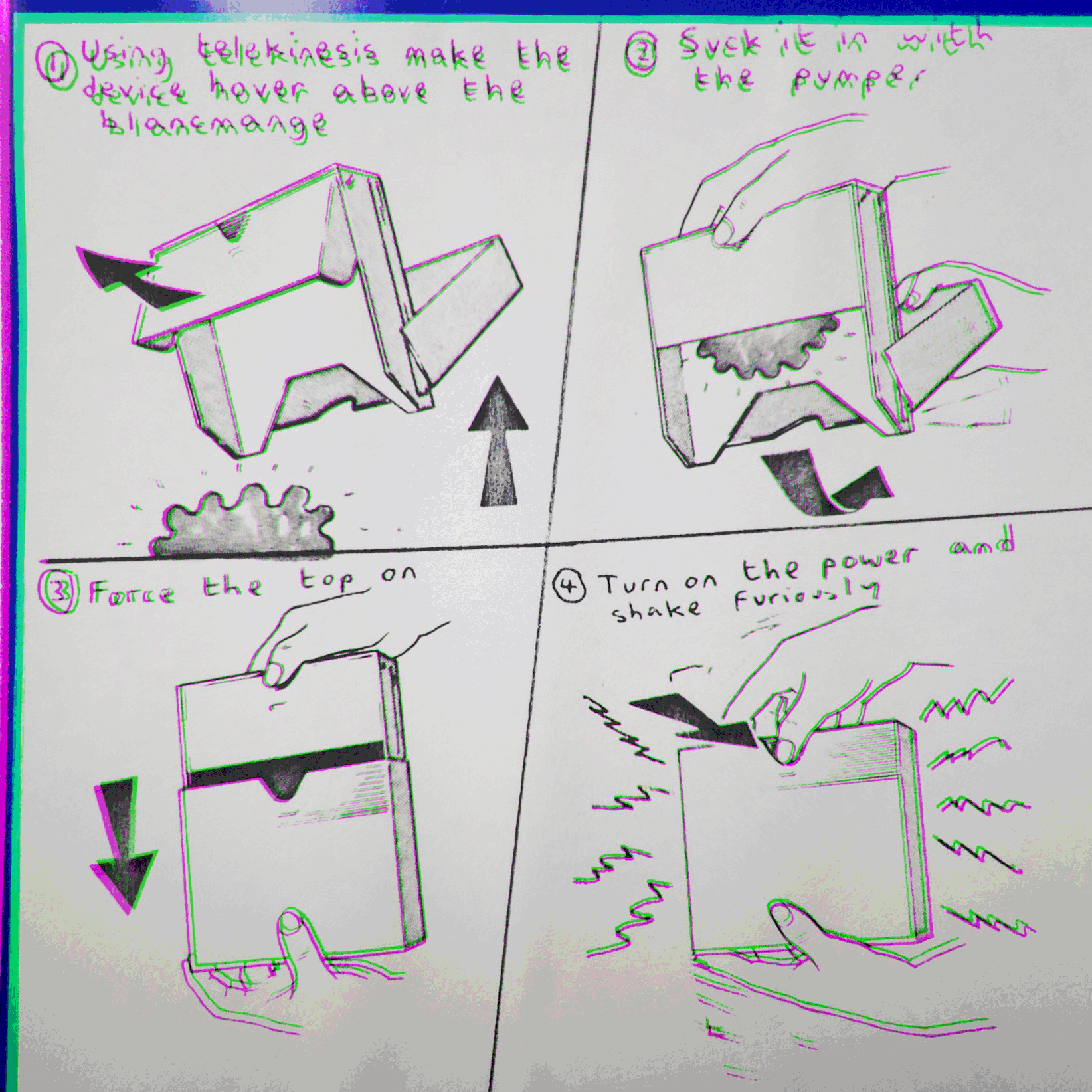 Should you be pestered by dangerous blancmanges during an entrance visit, simply activate the entrances2hell Blancmange Trapper as shown above.